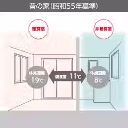エアコンの設定温度は同じでも、建物や窓の断熱性が低い場合・高い場合を比較すると、室内の壁・床・窓の温度が異なり、人が感じる温度も違ってきます。